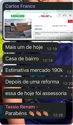 Uma operação real, explicada para os alunos do Programa de Acompanhamento Lucrando com Leilões, com todos os números abertos, da análise a arrematação.